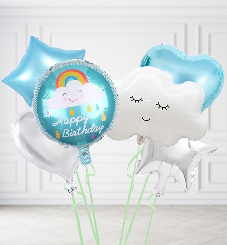 Blue Cloud Happy Birthday balloon in a box.
