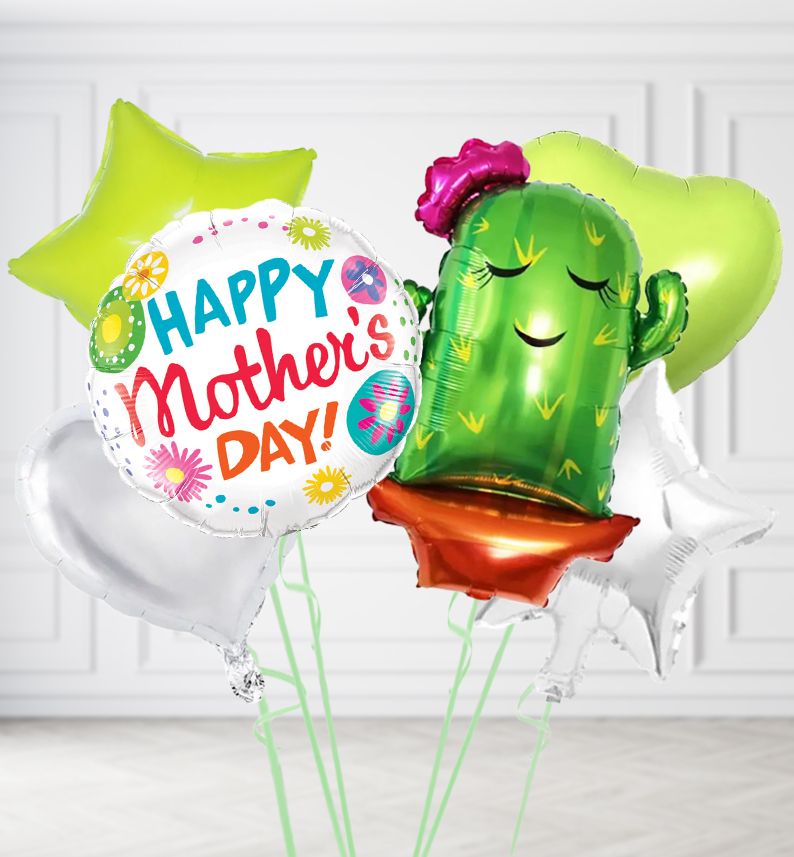 A vibrant Happy Mothers Day helium balloon featuring bold shapes, dots and vibrant colours. Perfect as a stunning gift for an outgoing mum on Mother's Day. A lovely foil Helium filled balloon, posted in a beautiful XL white Cloud 9 Balloons gift box.