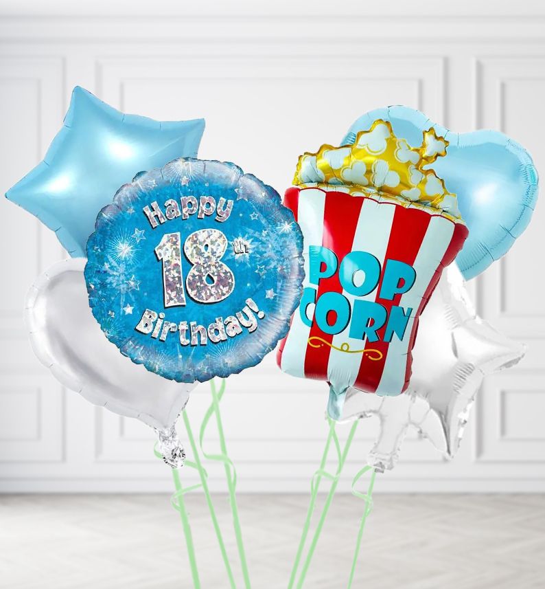 Happy 18th Birthday Blue Holographic balloon in a box.