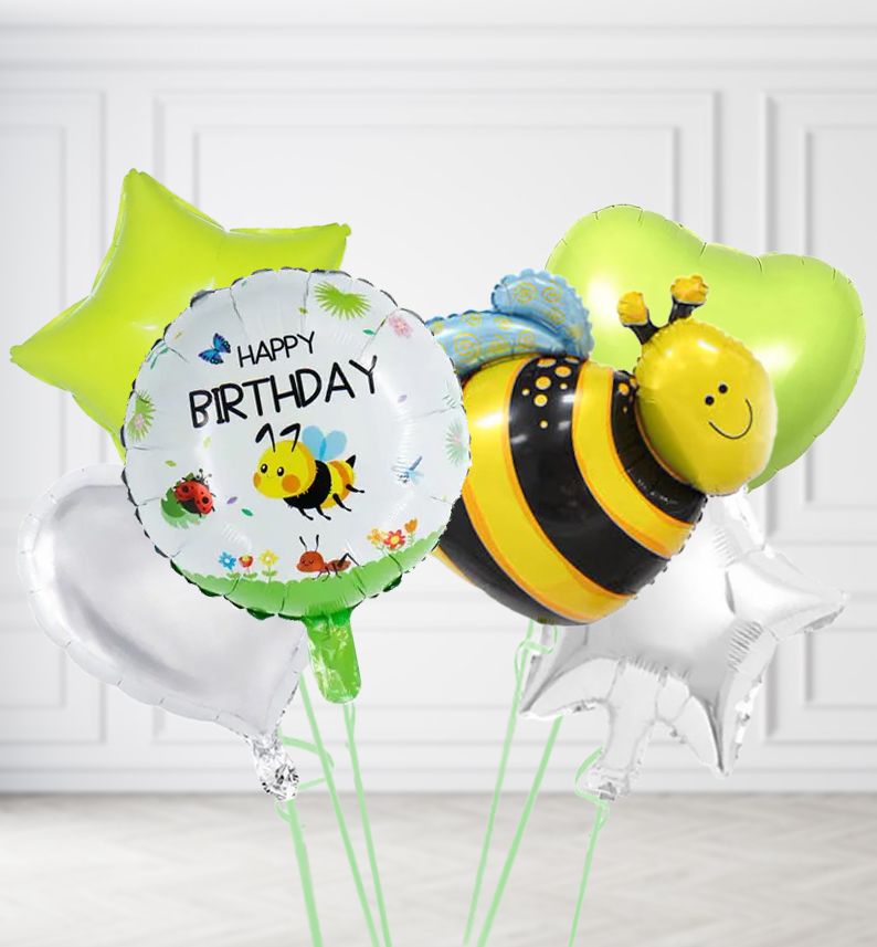 Happy Birthday Bee balloon in a box. Super sized helium balloons & balloon bunches for Birthdays, Birthday Parties and Special Occasions, delivered to your door in UK. A special gift for your loved ones. Helium filled balloons delivered.