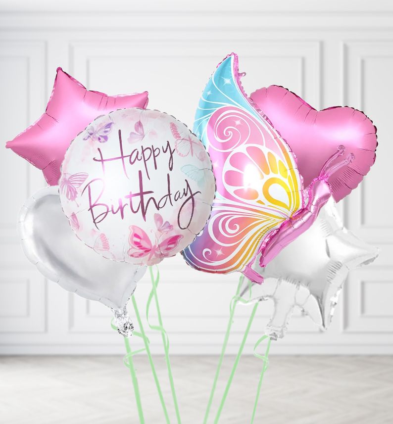 Happy Birthday Butterflies balloon in a box.