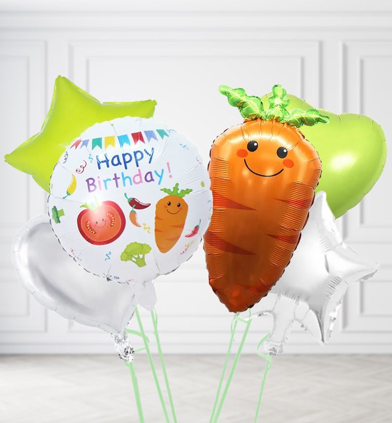Happy Birthday Veg balloon in a box. Super sized helium balloons & balloon bunches for Birthdays, Birthday Parties and Special Occasions, delivered to your door in UK. A special gift for your loved ones. Helium filled balloons delivered.