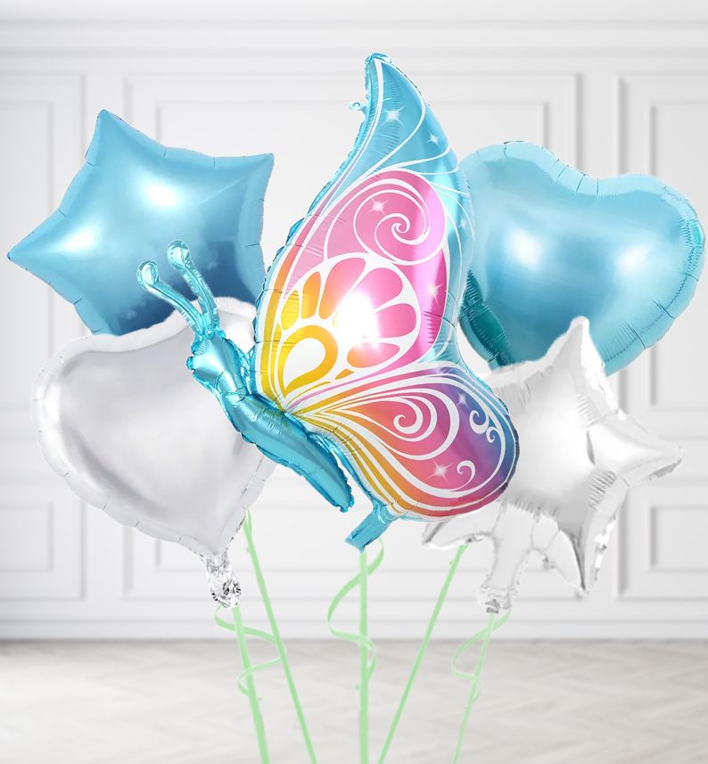 Pink and Blue Butterfly balloon in a box.