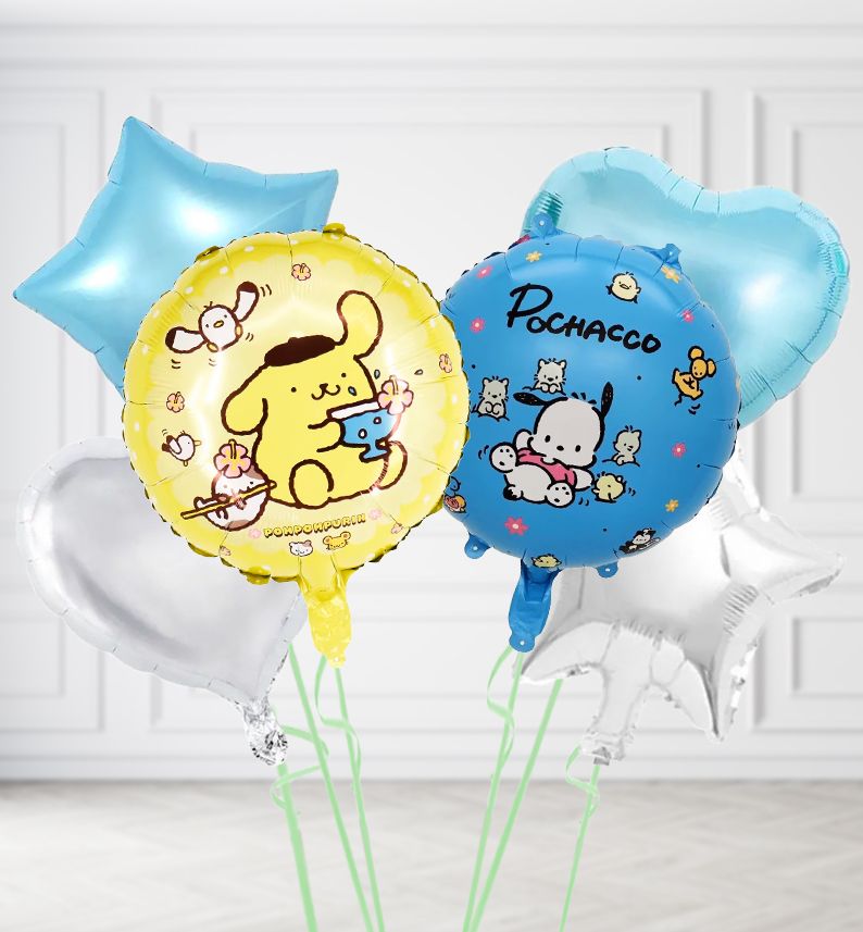 Description: A sweet 18 inch Pompompurin balloon featuring the beloved character Pompompurin sitting with bird friends against a yellow background and taking a drink. Build a vibrant eye catching Pompompurin Birthday Balloon bouquet by adding additional Hello Kitty friends balloons and Sanrio balloons plus a choice of blue, pink or silver plain foil balloons filled with helium and shipped in a lovely Cloud 9 Balloons Box. This lovely Pompompurin Balloon is an excellent choice for Hello Kitty themed birthday parties.