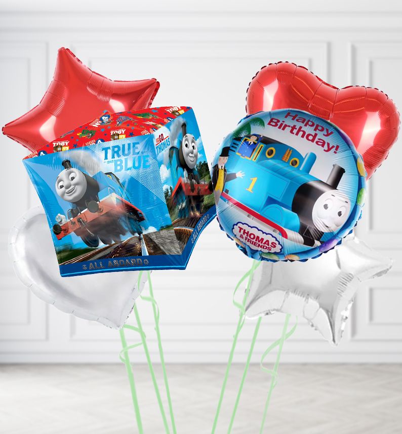 Detailed Description: An eye-catching Thomas the Tank Engine Cubez Foil Balloon featuring the iconic, cheerful blue engine with the classic red and blue colors and his signature number one on 4 sides. Measures approximately 22 inch in size. Add another Thomas or red, blue and silver balloons to build your unique Thomas balloon bouquet. Perfect for any party decoration or gift for any Thomas & Friends fan.